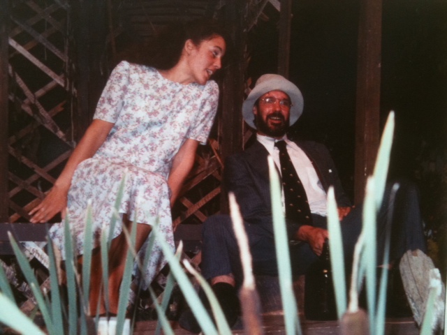 As Talley’s Folly took place at a gazebo by the river, the set was embellished with trees, branches, and bushes that I had to make my way through for my entrance. Every time the stage was re-dressed there seemed more and more trees for me to clamber through, expounding my first line, “MATT!!!” I think the stage hands were having fun challenging me each time. It helped my performance!